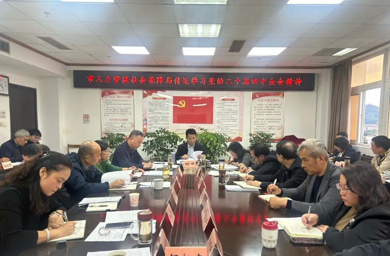 10月31日下午,市人社局召开党组(扩大)会,专题学习党的二十届四中全会精神,以及省委、市委常委会扩大会议精神,研究部署贯彻落实举措。局党组书记、局长程峰同志主持会议。