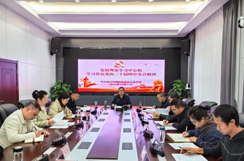 10月31日上午,市国防动员办召开党组理论学习中心组学习(扩大)会议,专题学习传达党的二十届四中全会精神。办主要负责同志主持会议并讲话,全体干部职工参会。