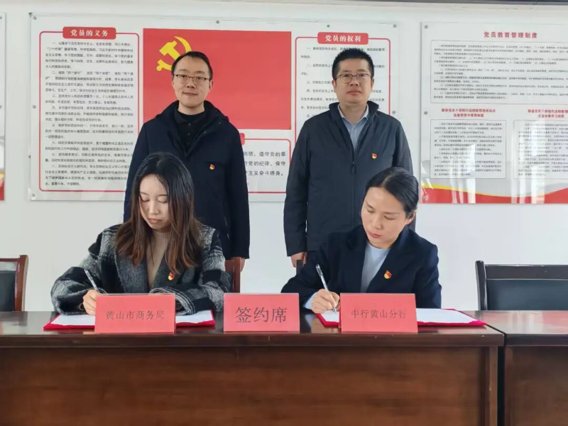 在石印村村委会会议室,双方围绕党建引领乡村振兴展开深入座谈。座谈会后,市商务局机关党支部与中行黄山分行公司风险联合党支部共同签署党建共建协议。一纸协议,既是双方深化合作的郑重承诺,更是政企携手服务乡村振兴的崭新起点。