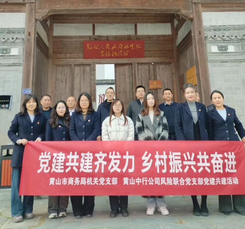 12月12日,市商务局机关党支部与中国银行黄山分行公司风险联合党支部,赴黟县西递镇石印村开展“党建共建共助 赋能乡村振兴”主题活动。