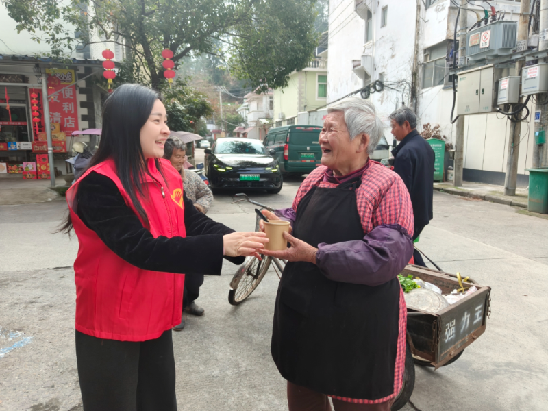 随后,志愿者们走进社区,为独居老人和高龄老人送上热气腾腾的汤圆与节日祝福,与群众话家常、问冷暖。