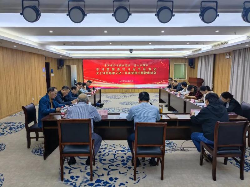 10月15日下午,黄山日报社召开学习贯彻落实习近平总书记关于宣传思想文化工作重要指示精神座谈会。会议传达学习了习近平总书记关于宣传思想文化工作重要指示及全国宣传思想文化工作会议精神,与会人员结合近期工作实际,围绕宣传引导、能力提升、选题谋划、产品创新、加强保障等方面进行交流发言。会议指出,习近平总书记关于宣传思想文化工作重要指示是我们做好新时期新闻舆论工作的根本遵循。全国宣传思想文化工作会议正式提出和系统阐述的习近平文化思想是习近平新时代中国特色社会主义思想的重要组成部分,是习近平总书记关于宣传思想文化工作系列重要论述、重要论断和重要讲话、重要指示批示精神的集大成,是指引我们做好宣传思想文化工作的时代旗帜和行动指南。作为地方党报,要始终如一的担使命、发强音,借助全国上下掀起学习贯彻习近平文化思想的强大势能,切实推进报媒深度融合,积极推动报媒产业发展、事业繁荣,全力宣传贯彻习近平文化思想在黄山大地落地生根,开花结果。