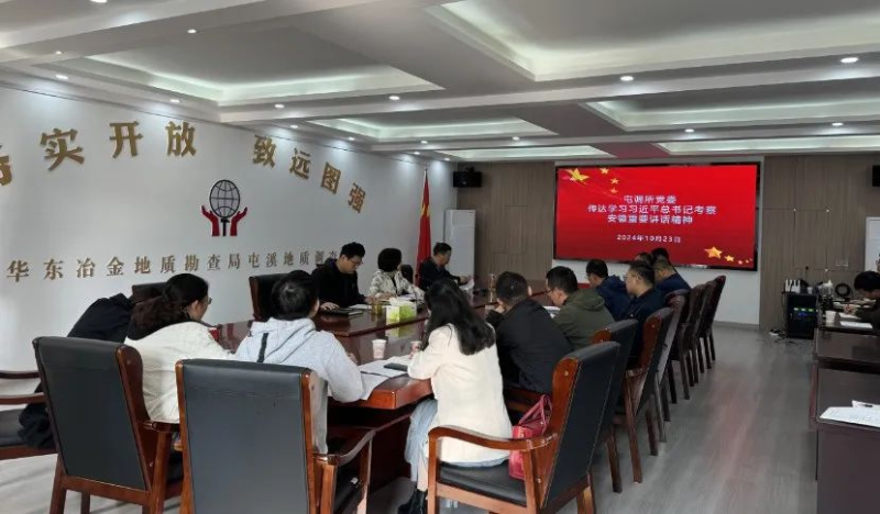 10月23日,屯调所党委召开专题会议,传达学习习近平总书记考察安徽重要讲话精神和全省领导干部大会精神。所党委书记、所长秦建芳主持会议并讲话。会议强调,积极参与新一轮找矿突破战略行动,加大立项入库力度,围绕服务生态文明建设、防灾减灾救灾等工作,发挥专业技术优势,参与区域战略合作,为地方经济社会发展贡献力量。