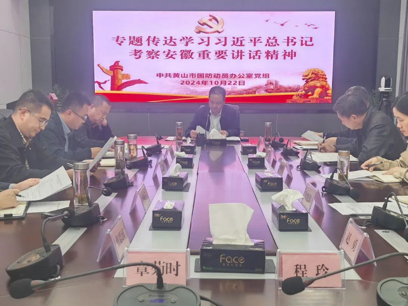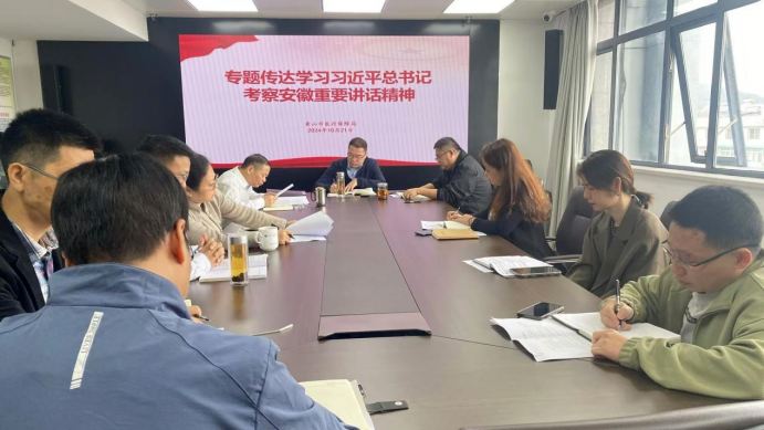 10月21日,市委党史和地方志研究室召开全体党员干部大会,专题传达学习习近平总书记考察安徽重要讲话精神。室主任杨剑飞主持会议并领学。会议要求,要深挖红色文化精髓和内涵,总结、研究好黄山史志文化,与文旅深度融合,为大黄山世界级休闲度假康养旅游目的地建设作出自身贡献。